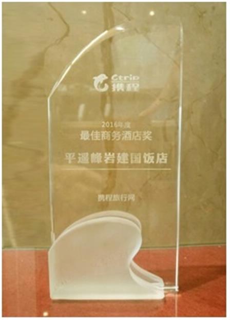 05/19 - 平遙峰巖建國飯店榮獲平遙峰巖建國飯店繼2016年11月榮獲“藝龍最佳客戶口碑獎(jiǎng)”、2017年1月榮獲“2016年度藝龍客戶最佳體驗(yàn)獎(jiǎng)”,2017年4月平遙峰巖建國飯店以2118位住客點(diǎn)評、95%的推薦率,再獲“攜程旅行網(wǎng)