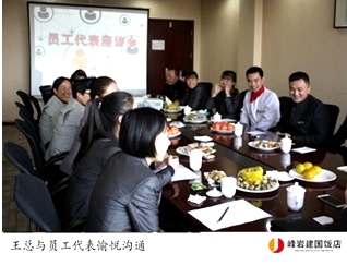 為傾聽員工心聲、了解員工需求,近日,酒店召開了員工座談會(huì),各部門員工代表近20人參加了此次座談會(huì)。王濤總經(jīng)理與員工親切愉快的交談,共同探討酒店經(jīng)營管理心得,暢談工作和生活,共同寄往酒店的發(fā)展。員工代表圍繞經(jīng)營措施、績效考核、員工食宿條件、培訓(xùn)和活動(dòng)、為賓客提供便利、提高工作效率等話題提出意見和建議,大家邊吃邊聊,暢所欲言,氣氛愉悅。