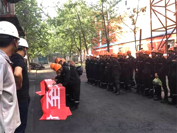 各企業(yè)在會后根據(jù)各自的實際情況,組織召開各種形式的安全工作會議和安全活動,各企業(yè)除了在廠區(qū)和公共場所懸掛條幅、張貼標語、制作板報專欄外,峰巖焦化和福利洗煤組織開展安全宣誓、安全簽字;匯鈺公司邀請安全專家到車間給干部職工進行現(xiàn)場安全培訓;新墻材公司磚廠領導組織班組干部進行安全隱患排查整治工作;峰巖木業(yè)、峰巖礦棉和遠東燃氣組織進行消防演練活動;峰巖供熱公司積極組織職工進行隱患排查和管道檢修;二畝溝煤業(yè)組織開展安全知識競賽活動;明子煤業(yè)在井口現(xiàn)場分發(fā)安全宣傳資料。大家積極渲染活動氛圍,形式多樣、場面熱烈。