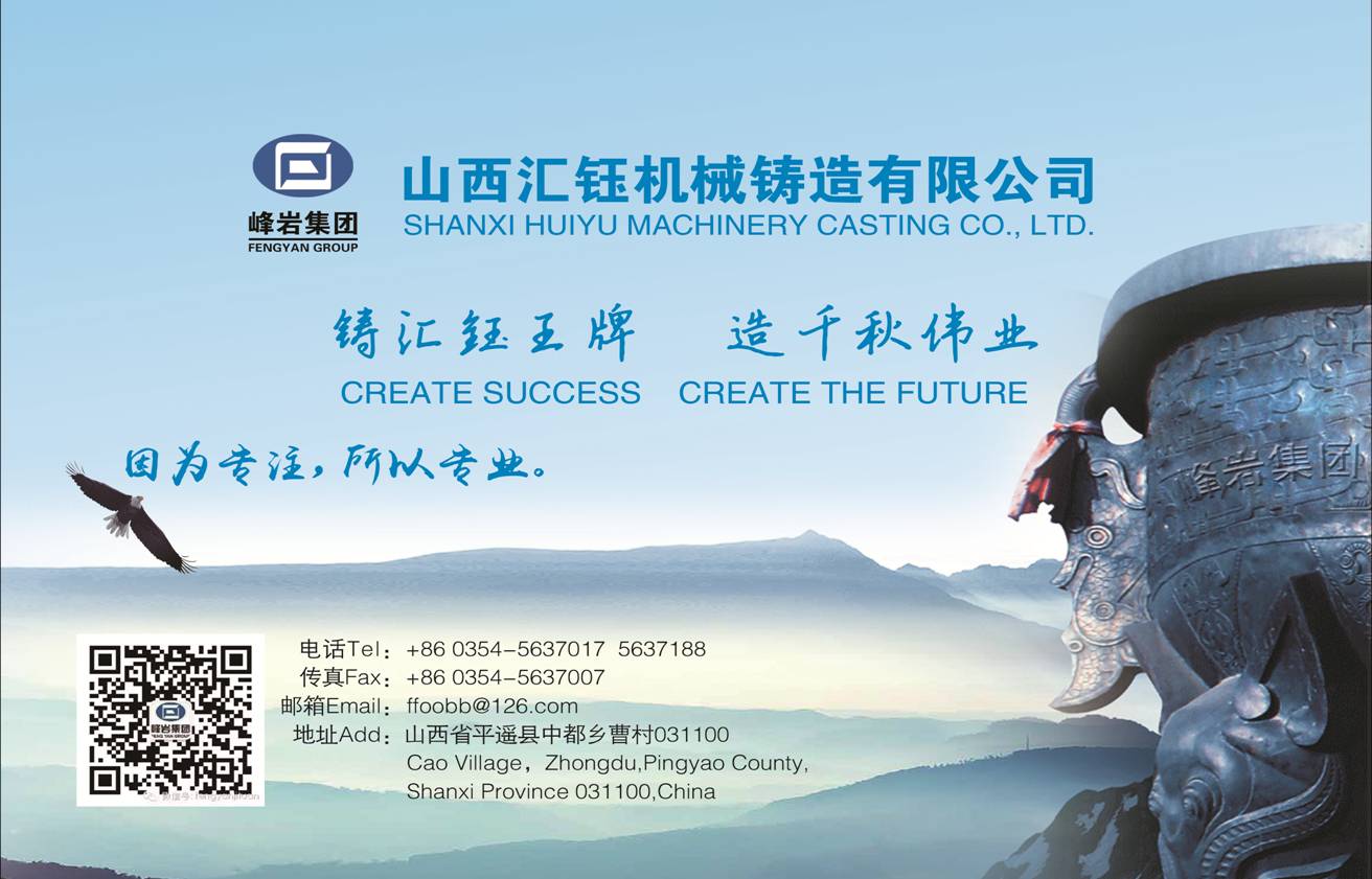 05/11 - 峰巖鑄造集聚區(qū)項(xiàng)目招商資料山西平遙峰巖煤焦集團(tuán)有限公司根據(jù)山西省經(jīng)濟(jì)和信息化委員會晉經(jīng)信投資字[2011]323號《關(guān)于平遙縣鑄造產(chǎn)業(yè)基地規(guī)劃》和平遙縣經(jīng)濟(jì)和商務(wù)糧食局平經(jīng)審[2014]16號《關(guān)于山西匯鈺機(jī)械鑄造有限公司在峰